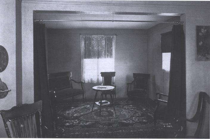 Each residence had 7 rooms; a living room, dining room, and kitchen on the 1st floor, and 4 bedrooms on the 2nd. In addition, each had a pantry and cellar. Although the original design included an open back porch off the kitchen, the porches were eventually enclosed, providing another small room. The kitchen was equipped with a combination laundry tub-sink and coal cooking range with a hot water tank. No toilet facilities were located inside, but concrete outhouses, containing both the toilet and coal bin, were built behind each house. A coal stove located between the living room and dining room augmented the heat generated by the kitchen range. To eliminate the potential problem of dampness, a mixture of cement, coal cinders, and hydraulic lime was concocted to make the concrete nonabsorbent; and “to prevent water from rising from the foundation upward into the building, the lowest course is mixed with crude oil.” One precaution included plastering of interior walls. These methods were not entirely successful. In 1920, the Bureau of Labor Statistics reported peeling plaster and paint. (Blistering of exterior paint is visible in one of the company’s official photographs made in the teens). A woman who lived in Concrete City as a child recently recalled her father’s shirts freezing in an upstairs closet, requiring her mother to iron them before he could go to work.
